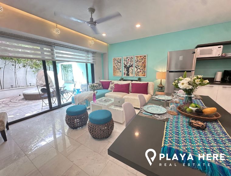 This beautiful garden level condo for sale on Calle 38 in Playa del Carmen is located just minutes from the beach and all the attractions of the famous 5th Avenue. This is one of the best locations in town for short term rentals. You and your guests will be delighted with the ease and convenience of this prime downtown location, guaranteeing your constant rental occupancy and ensuring a healthy return on your investment for many years to come.